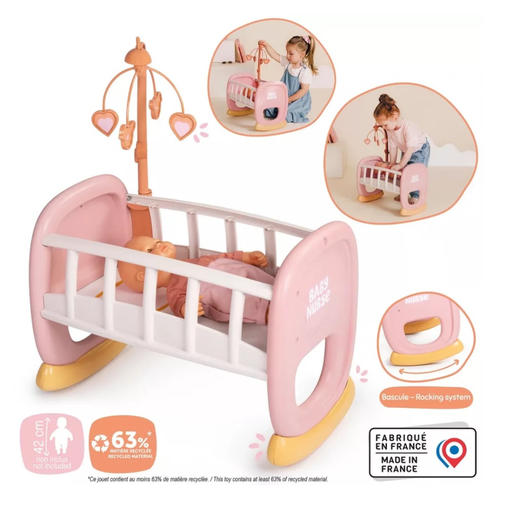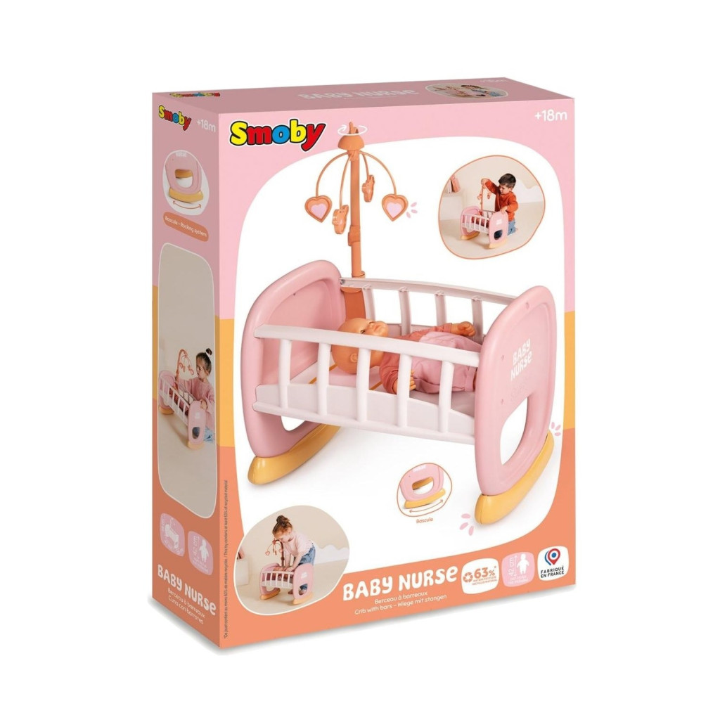 Детско креватче-люлка за кукла-бебе с височина 32 см, 47 x 28 x 59 cm, на Smoby от серията Baby Nurse
