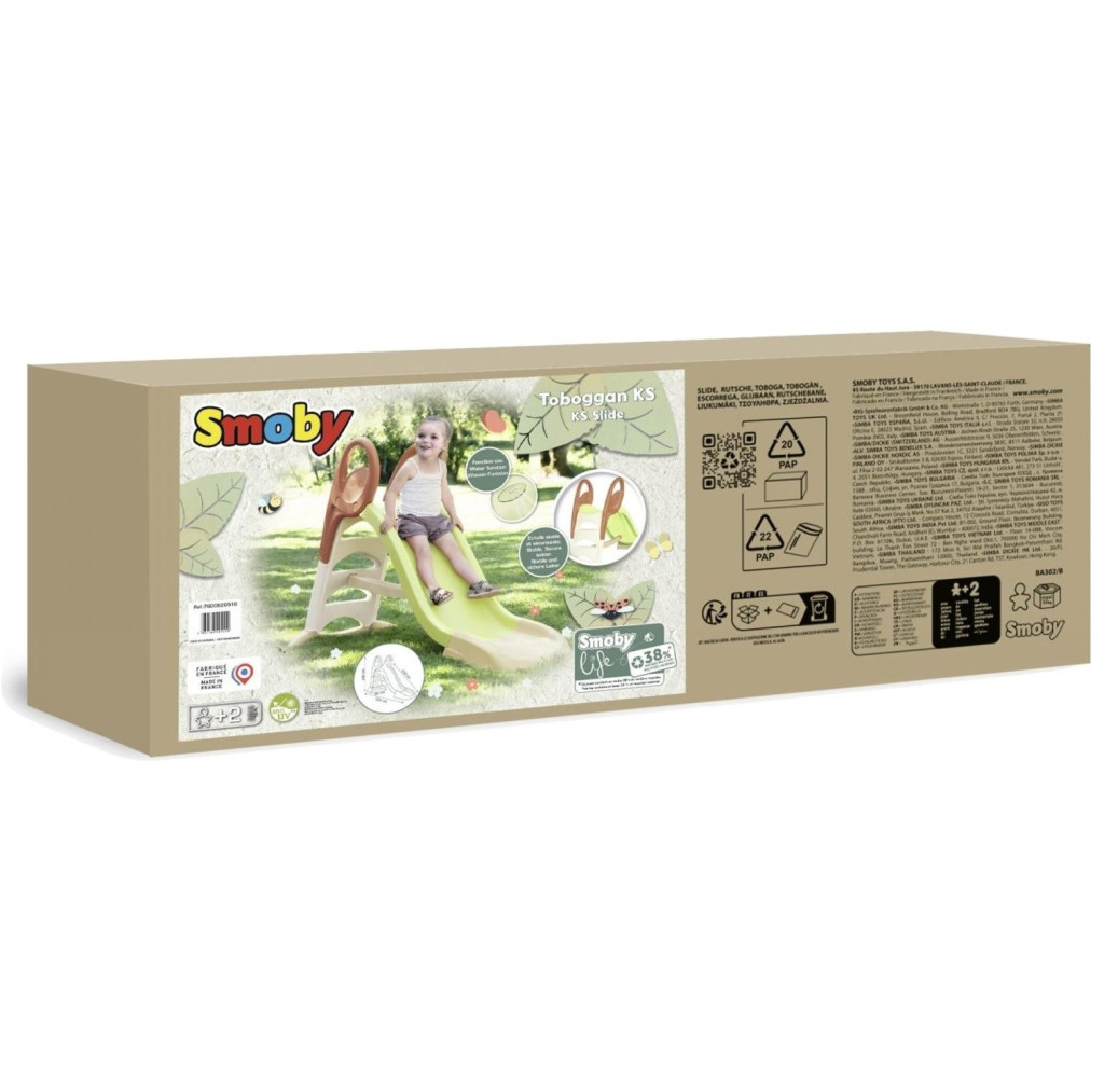 Тази пързалка от Smoby е проектирана с внимание към детайла и безопасността, като стълбата разполага с големи, удобни за захващане дръжки и стъпала, които предотвратяват подхлъзване.