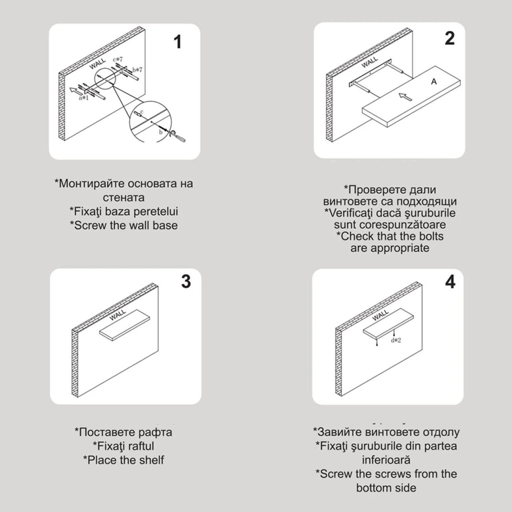 Не е необходимо да се сглобяват и лесно се монтират с 2 винта и дюбели (включени).