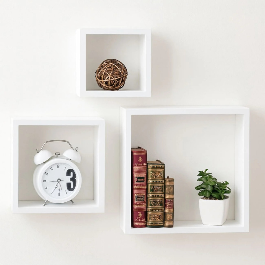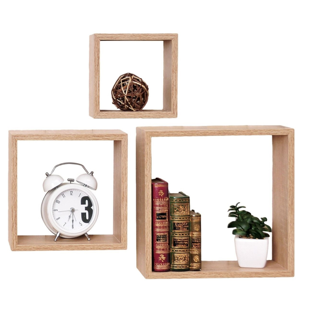 Комплект рафтове, Универсална етажерка за стена, 3 броя, MDF, Форма квадрат, До 3 кг.