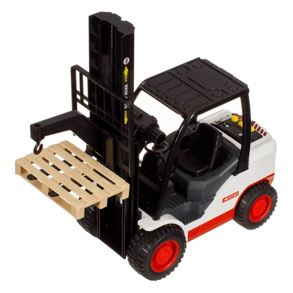 Играчка строителен автомобил - мотокар с лост, който се движи нагоре и надолу, палет за транспортиране, звук в работен режим и светлина.