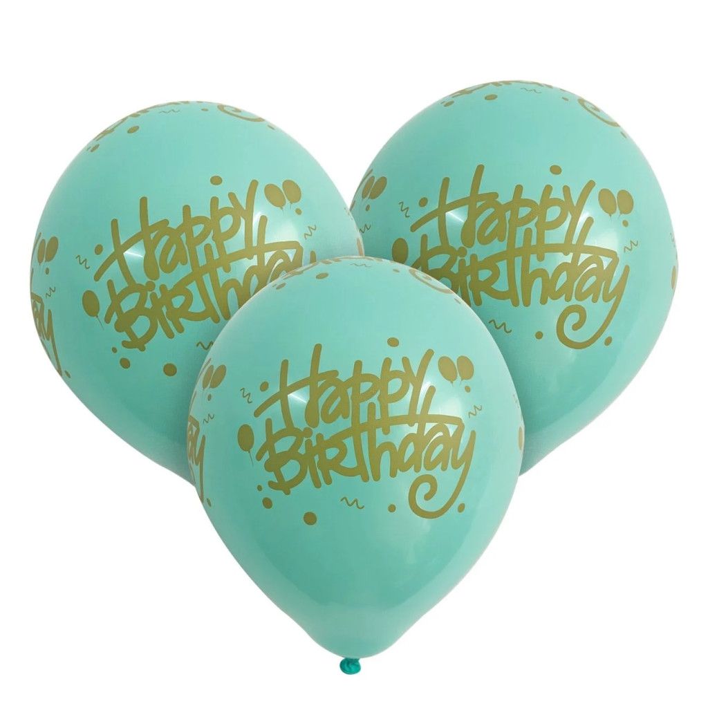 Комплект от 20 разноцветни латексови балона с надпис „Birthday“, идеални за празнична украса.