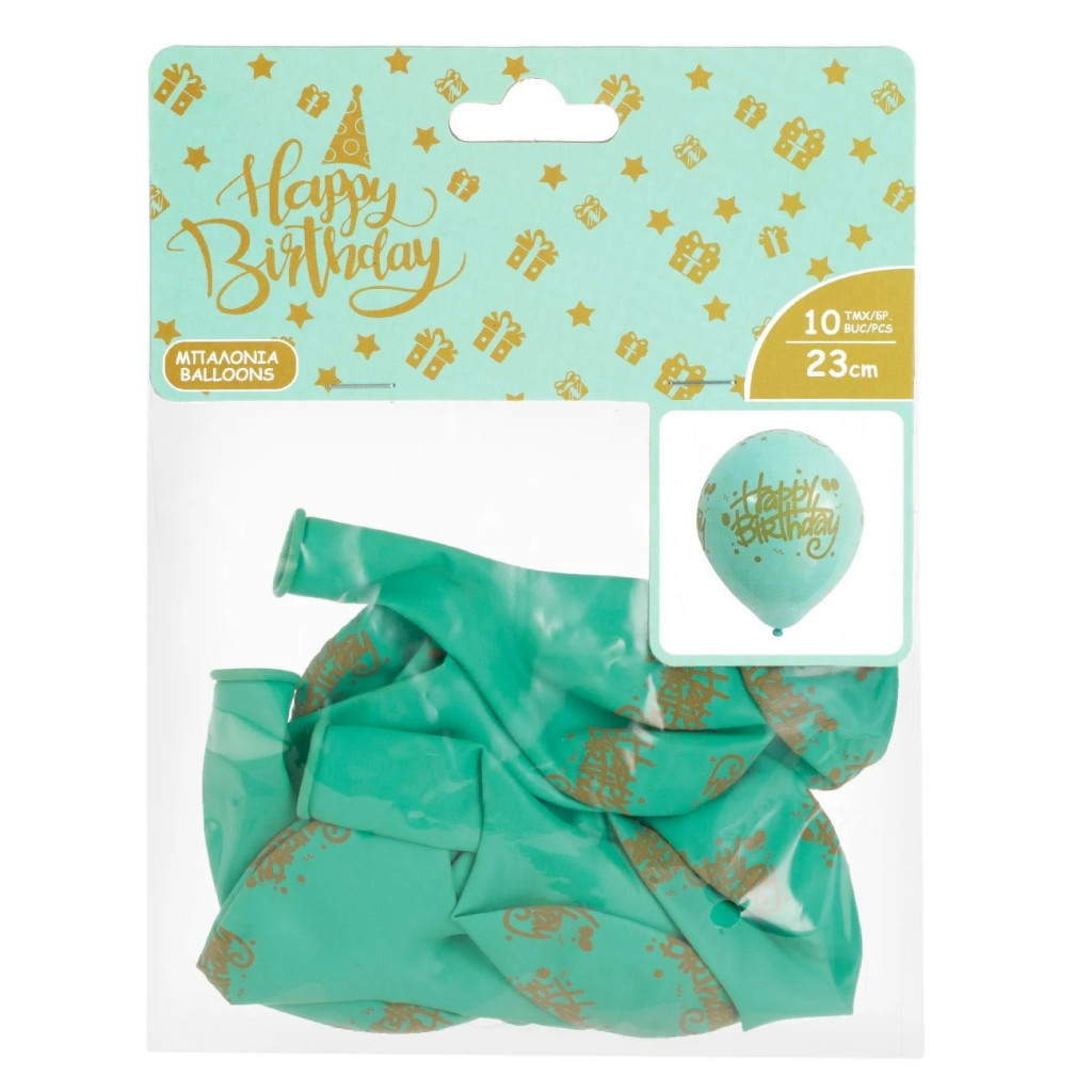 Комплект балони (20ч) Happy Birthday, Латекс златни надписи, Party balloon set, 23 cm