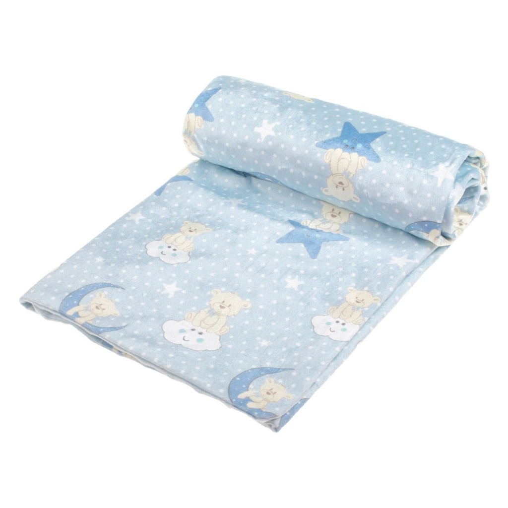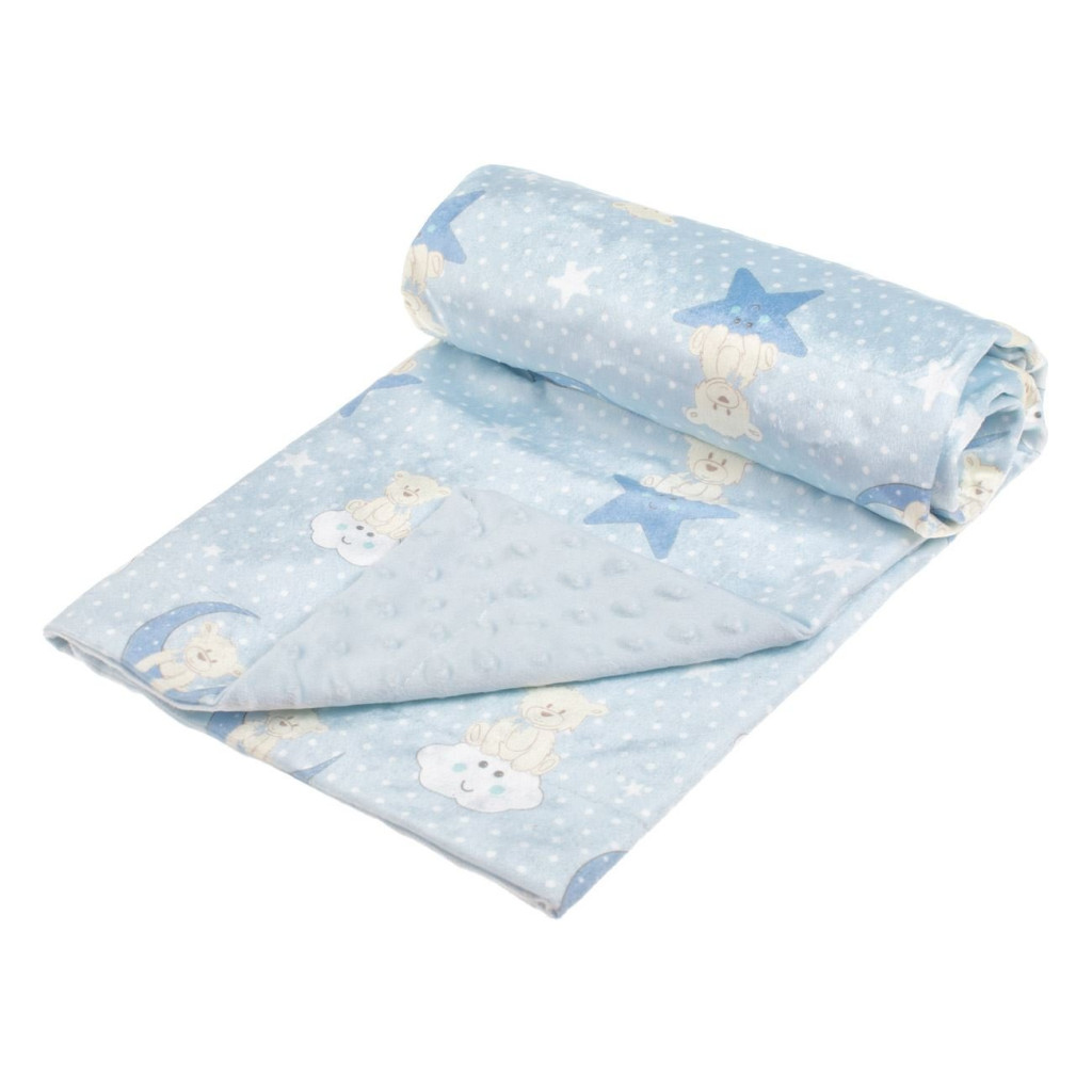 Бебешко поларено одеяло Мече, Двулицево 90x80 cm, Син