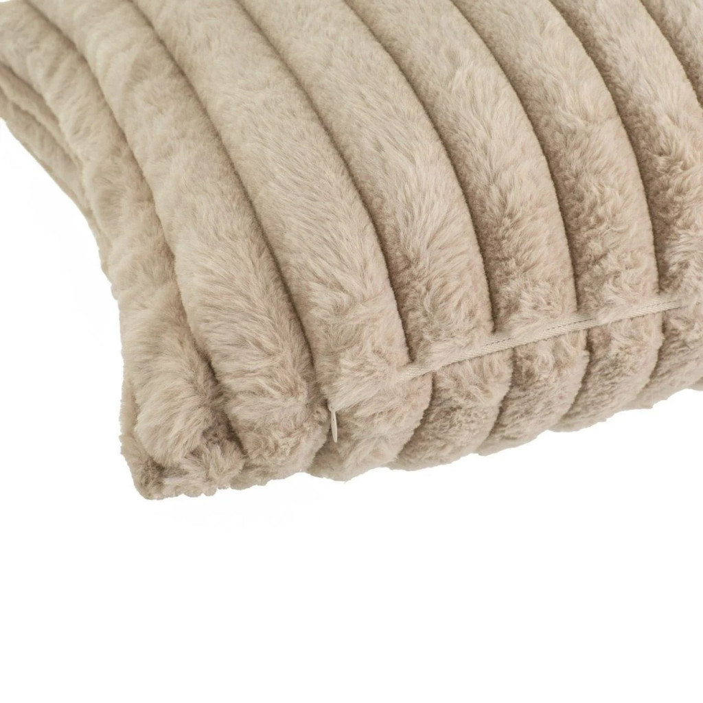Зимна декоративна калъфка за възглавница от мека материя, едностранна с цип в бежав цвят.
