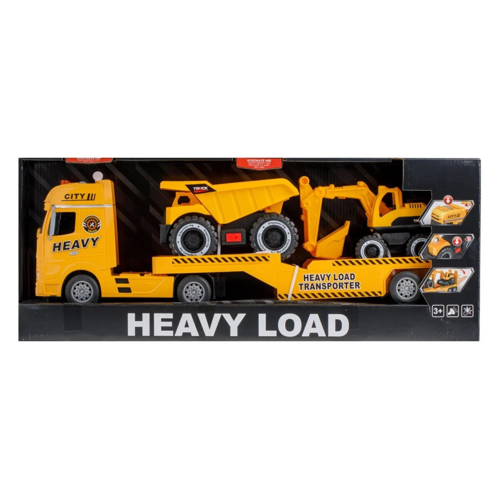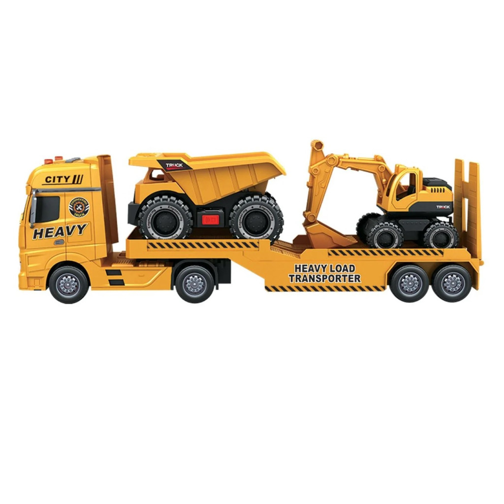 Тир с ремарке и 2 строителни машини, Светлини и звуци, 59x15x24cm, Жълт, 3+ години