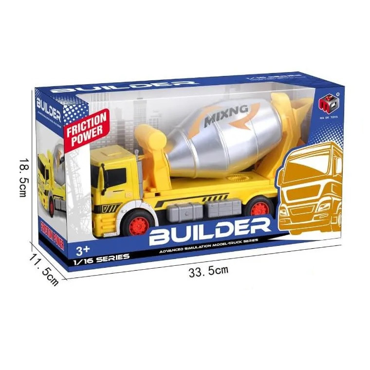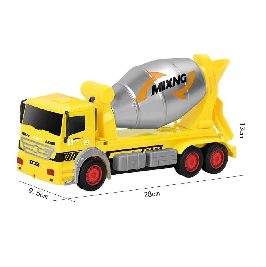 Камион бетоновоз играчка с въртящ се барабан, инерционен механизъм и гумирани колела.