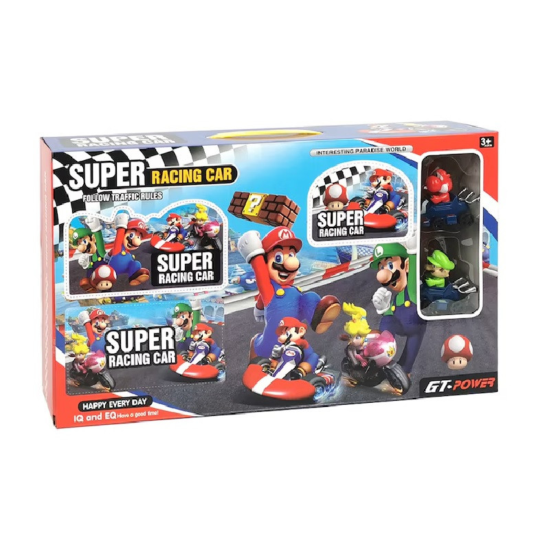 Детски комплект Паркинг - Писта с пързалка Super Mario, с 2 колички и мини-фогурки