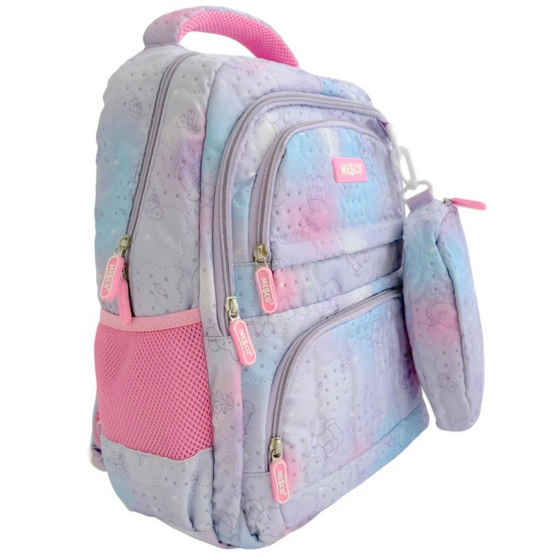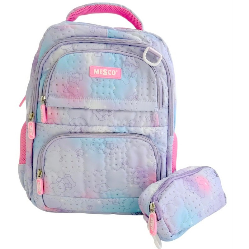 Раница МESCO с 2 отделения вътрешен и 2 външни джоба, 1 заден джоб с цип, 2 странични джоба с несесер, 44х30х18 см, Син/светло роз