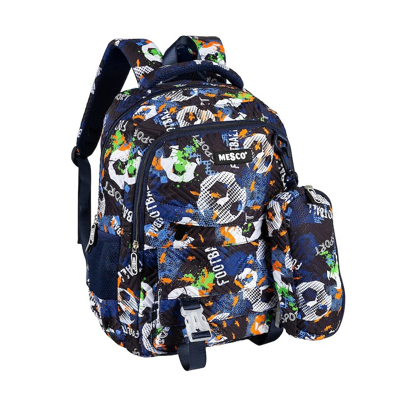 Раница МESCO с 2 отделения вътрешен и 2 външни джоба, 1 заден джоб с цип, 2 странични джоба с несесер, 44х30х18 см, Черно/Син