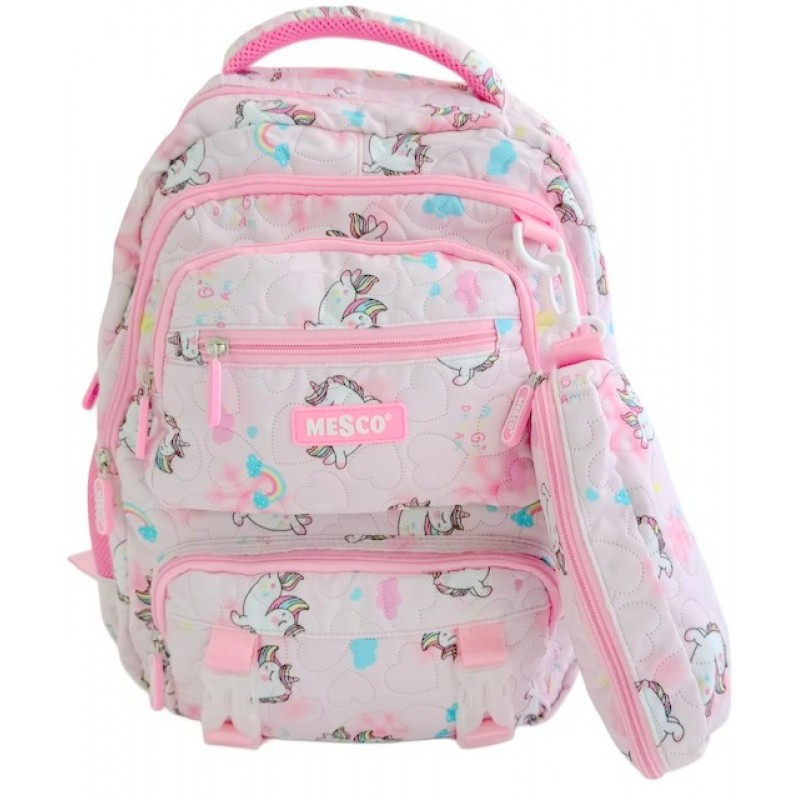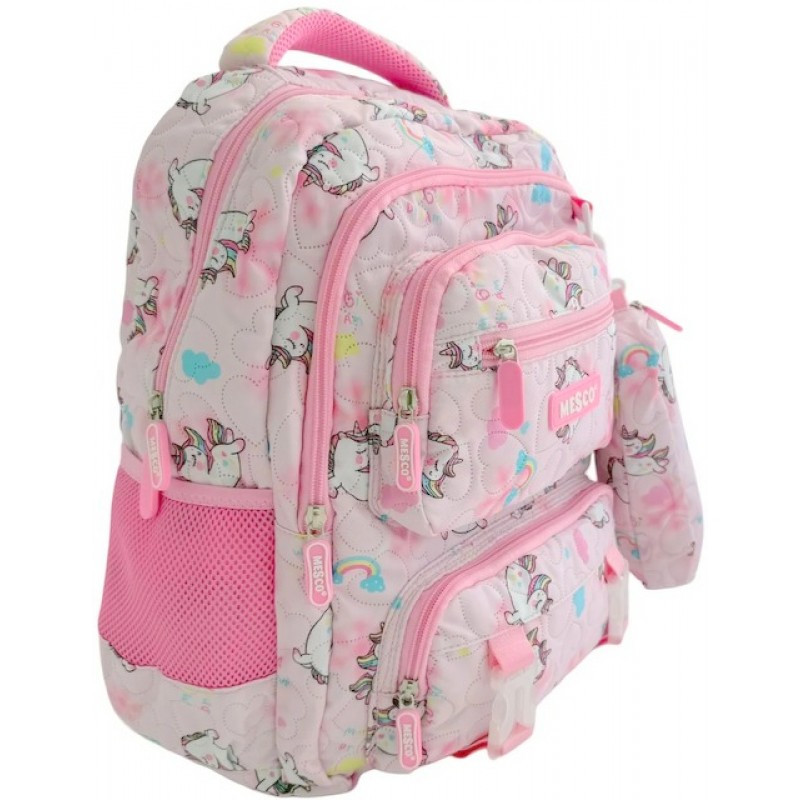 Раница МESCO с 2 отделения вътрешен и 2 външни джоба, 1 заден джоб с цип, 2 странични джоба с несесер, 44х30х18 см, Роз/Кафе