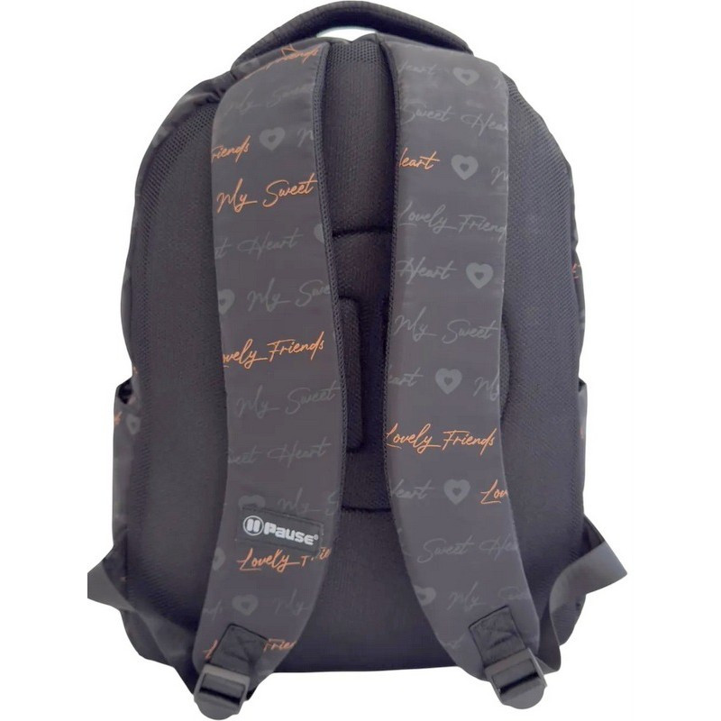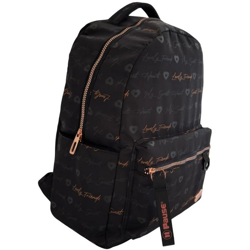 Раница PAUSE с 1 отделение с вътрешен джоб за лоптоп, 2 външни джоба с цип и 2 странични джоба, С мек анатомичен гръб, 41х30х17 см, Черен