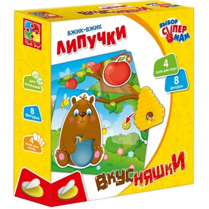 Комплектът включва: 8 фигурки, 4 игрални полета, 8 жълти велкро, 8 бели велкро.