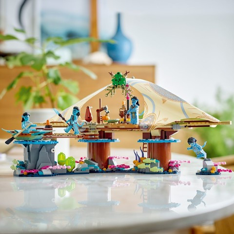 Комплект за игра с Пандора за фенове на „Аватар“ – деца и любители на киното могат да преживеят отново любими моменти от филма или да създадат собствени приключения със строителния комплект LEGO® Avatar Дом на Меткейна в рифа (75578);