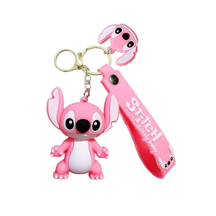 Ключoдържател със силиконова фигурка Стич, Stitch in pink, 6.50 х 5.50 см, Розов