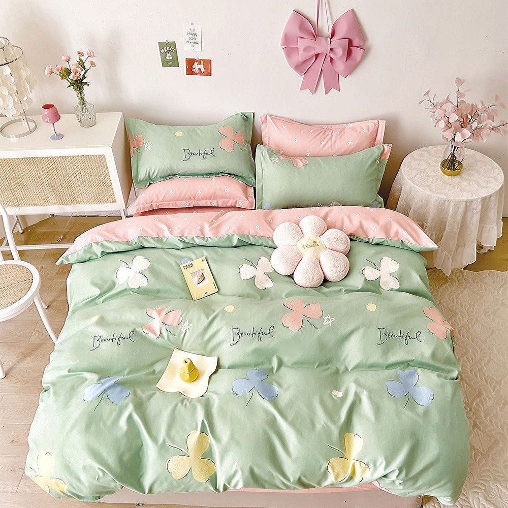НОВО Двулицево спално бельо с ластик Цветя, 6 части, 15933. 200 x 230 см, Резида/Роз