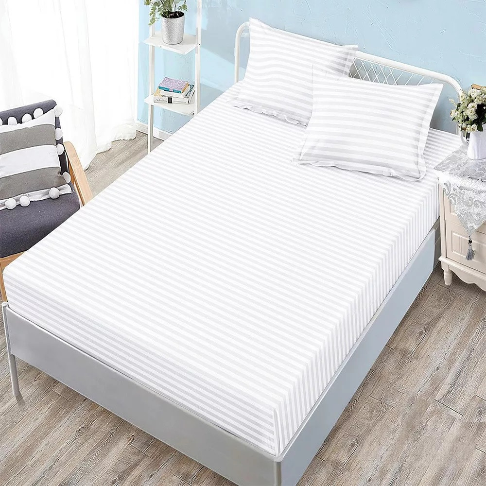 Долен чаршаф с ластик и 2 калъфки (размер 160/180x200), 3 части , 18231, Бял
