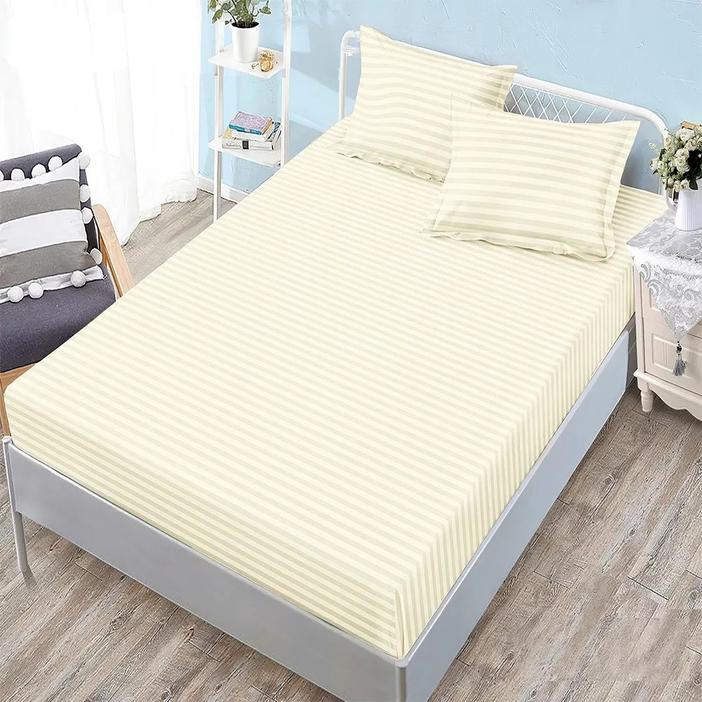 Долен чаршаф с ластик и 2 калъфки (размер 160/180x200), 3 части , 18233, Светложълт