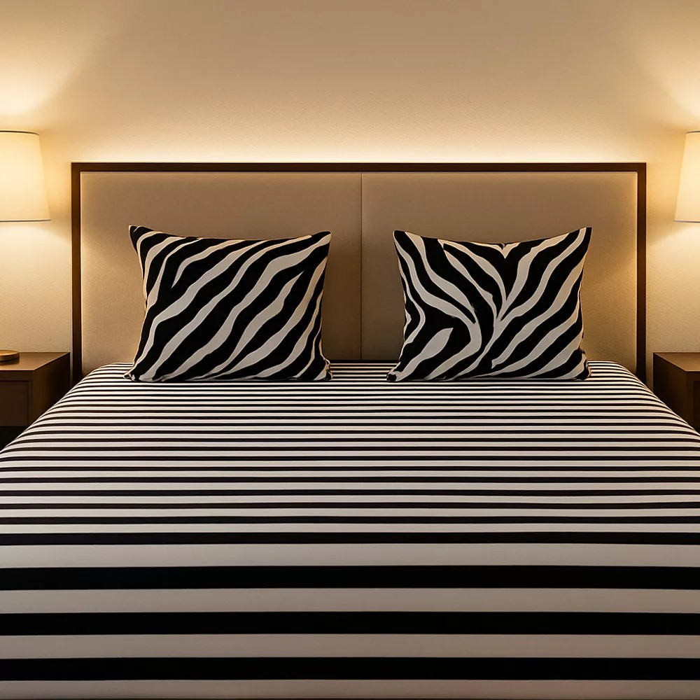 НОВО Долен чаршаф с 4 калъфки (размер 220x240), 5 части , 184446, Бяло/Черно рае