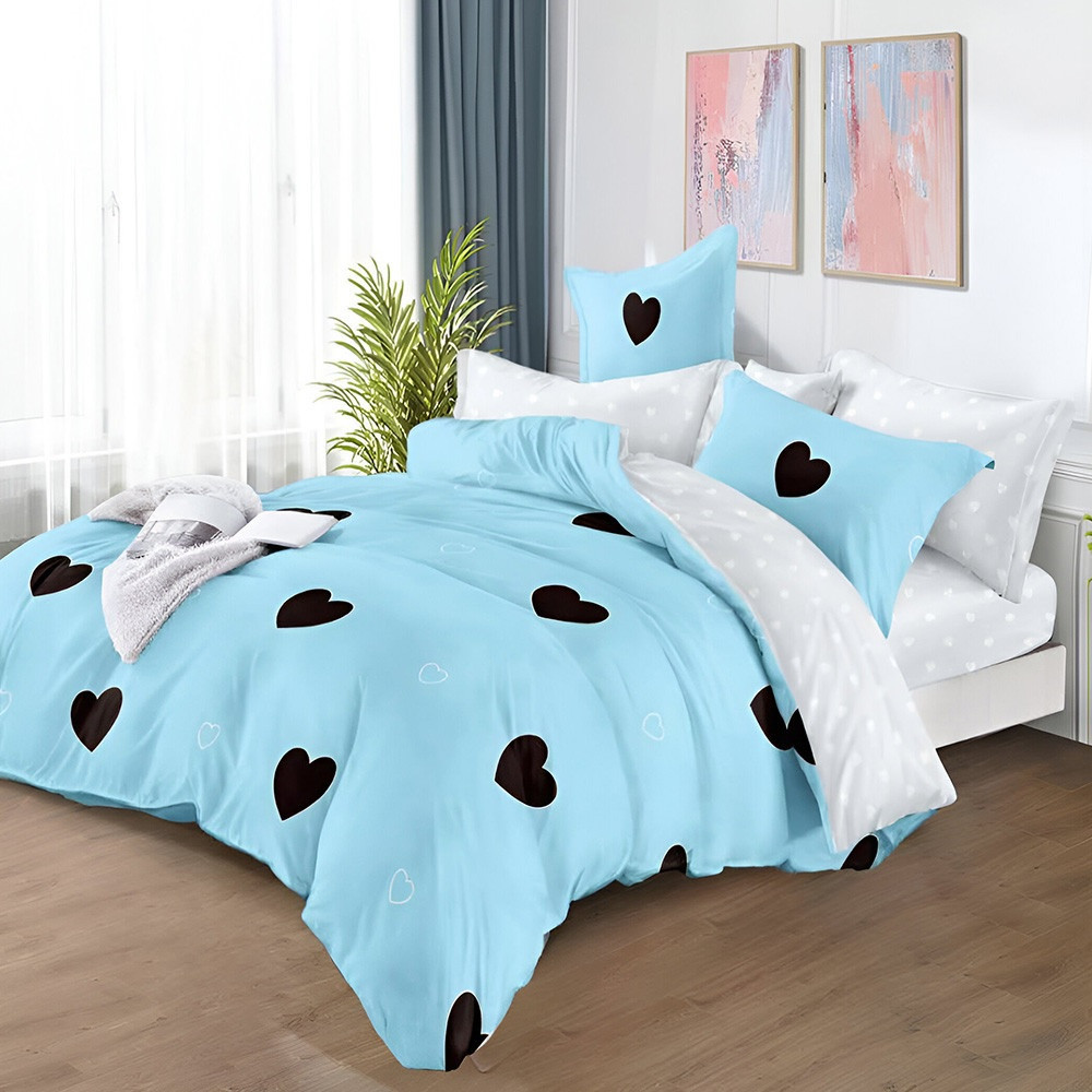 НОВО Двулицево спално бельо с ластик Сърчица, 6 части, 18524. 200 x 230 см, Син/Крем