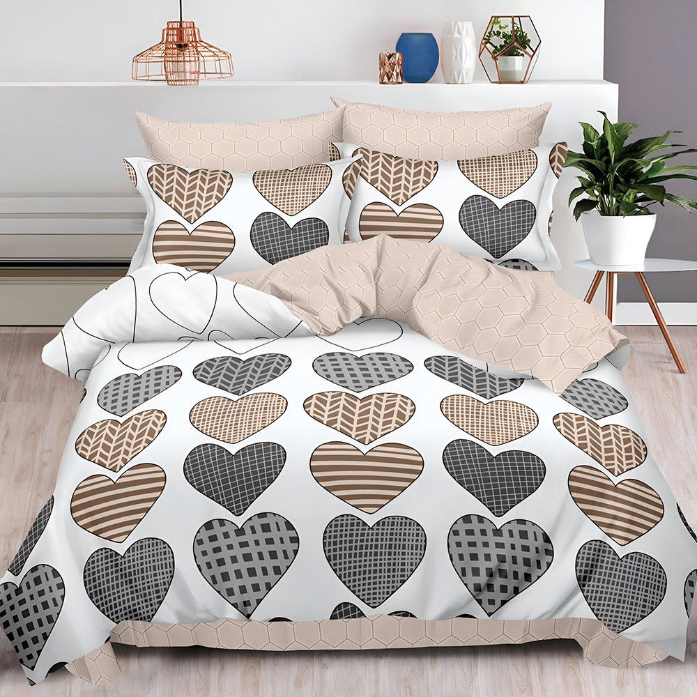 НОВО Двулицево спално бельо с ластик Сърчица, 6 части, 18526. 200 x 230 см, Бял/Беж