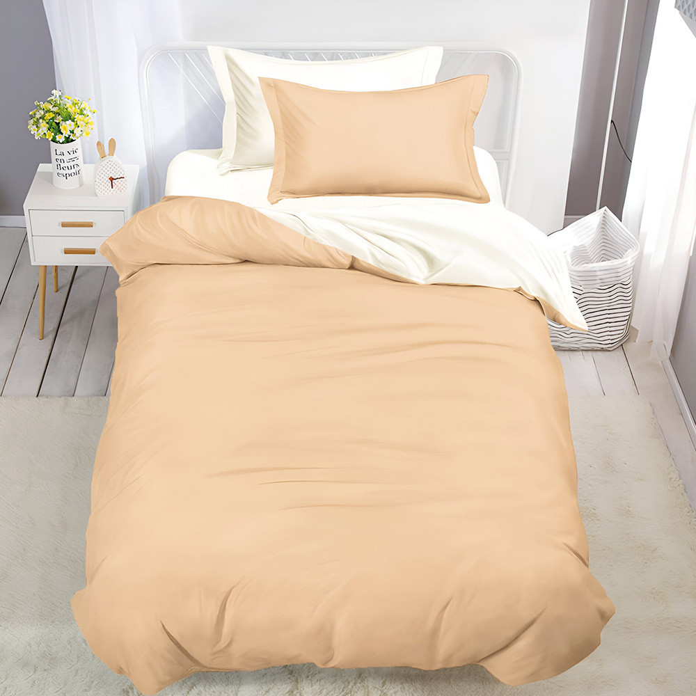 Двулицево спално бельо с ластик (размер за приста), 4 части, 160 х 200 см, Бежаво/Кремаво
