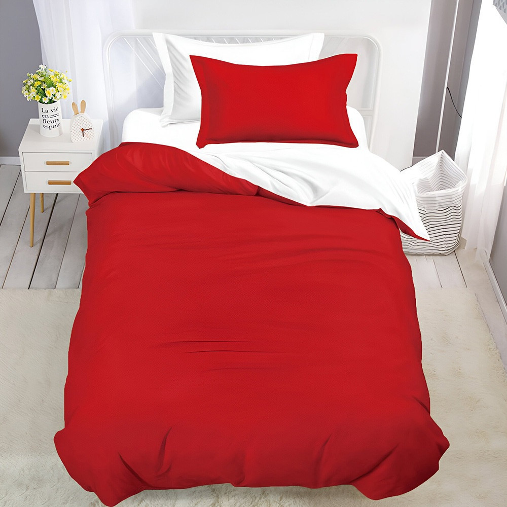 Двулицево спално бельо с ластик (размер за приста), 4 части, 160 х 200 см, Червено/Бяло