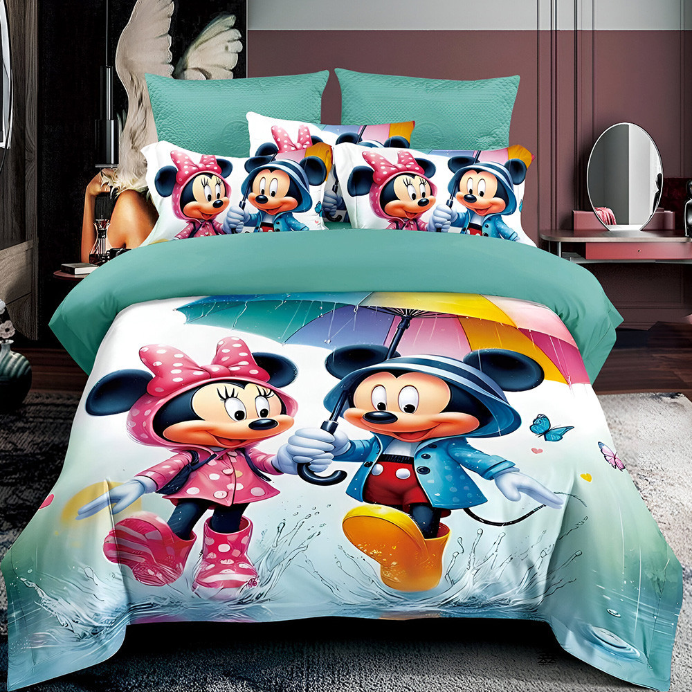 Детски спален комплект Мики и Мини Маус 3D (Реална визия), 6 части, Disney Mickey and Minnie Mouse raining bedding set, 200x230cm