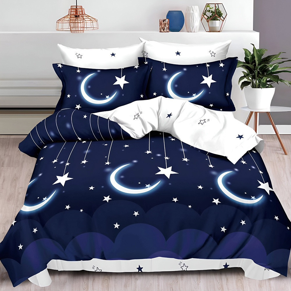 НОВО Двулицево спално бельо с ластик Stars, 6 части, 18965. 200 x 230 см, Син/Бял