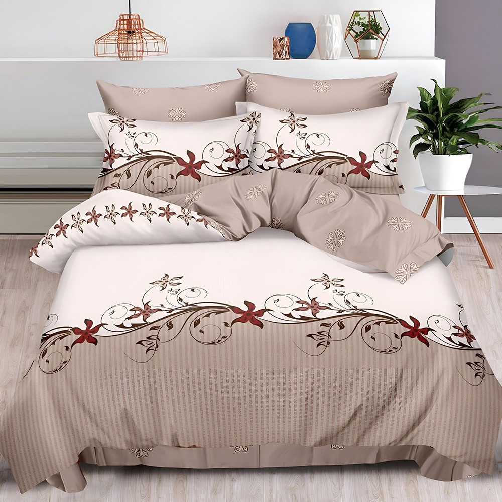 Двулицево спално бельо с ластик Цветя, 6 части, 18967. 200 x 230 см, Бежаво/Светло кафяв
