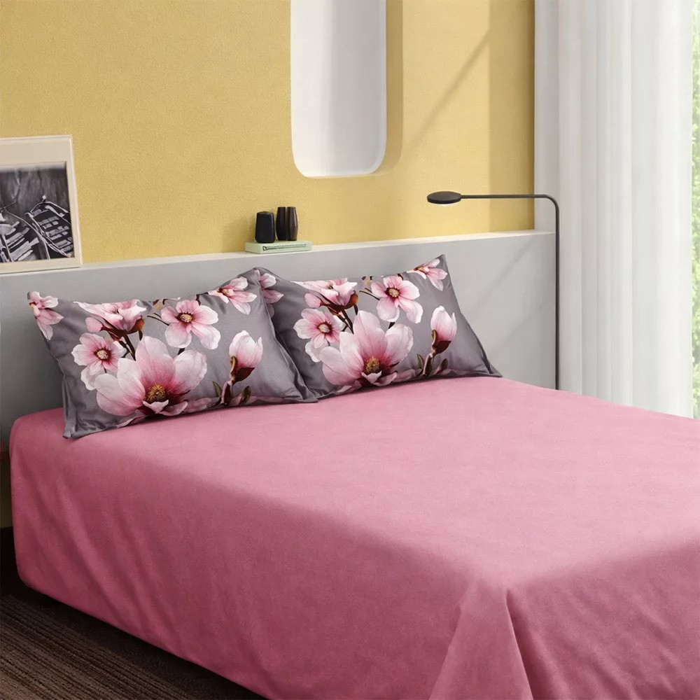 Долен чаршаф с 4 калъфки (размер 220x240), 5 части , 18985, Розов/Сив